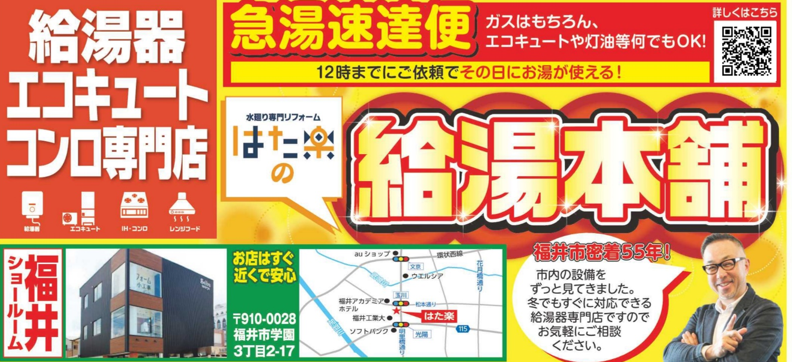 はた楽独自サービス お湯がその日に使える‼「給湯速達便」